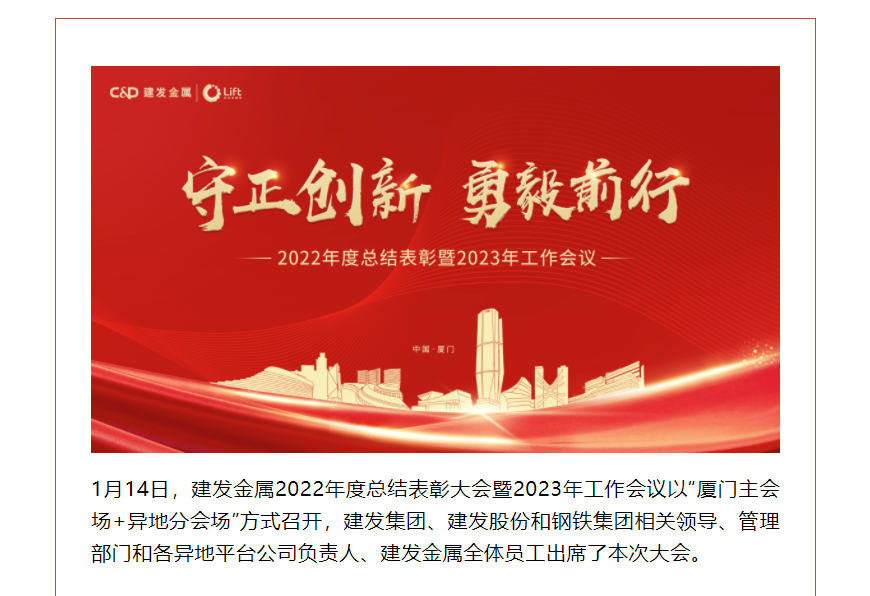 守正創(chuàng)新 勇毅前行 | 建發(fā)金屬召開2022年度總結表彰大會暨2023年工作會議